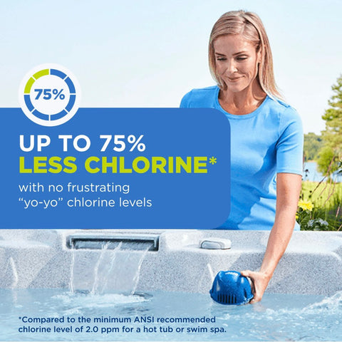 Enjoy the benefits of Fresh Mineral Water® that’s cleaner, clearer, softer and easier™ to take care of with the unique properties of SmartChlor Technology that uses up to 75% less chlorine* and greatly reduces hot tub maintenance like shocking.